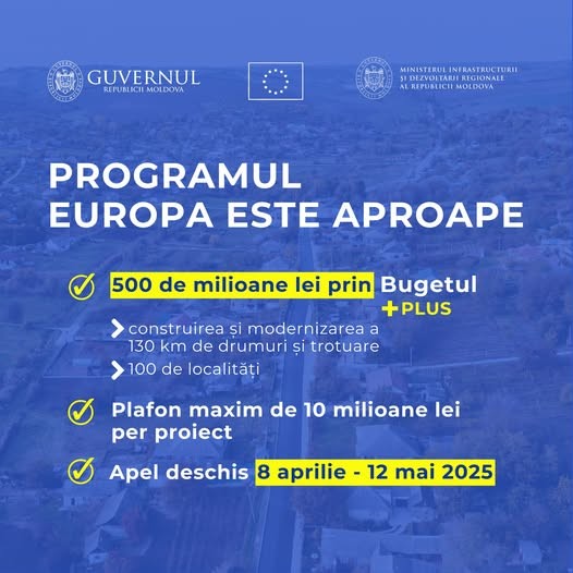 Primăria orașului Ialoveni anunță CONSULTĂRI PUBLICE în scopul identificării și selectării drumurilor locale care urmează a fi reparate în cadrul Programului Guvernului RM pentru modernizarea drumurilor locale „EUROPA ESTE APROAPE”, ediția 2025, cu finanțare din FNDRL pentru data de 𝟑𝟎 𝐚𝐩𝐫𝐢𝐥𝐢𝐞 𝟐𝟎𝟐𝟓, 𝐨𝐫𝐚 𝟏𝟕:𝟎𝟎