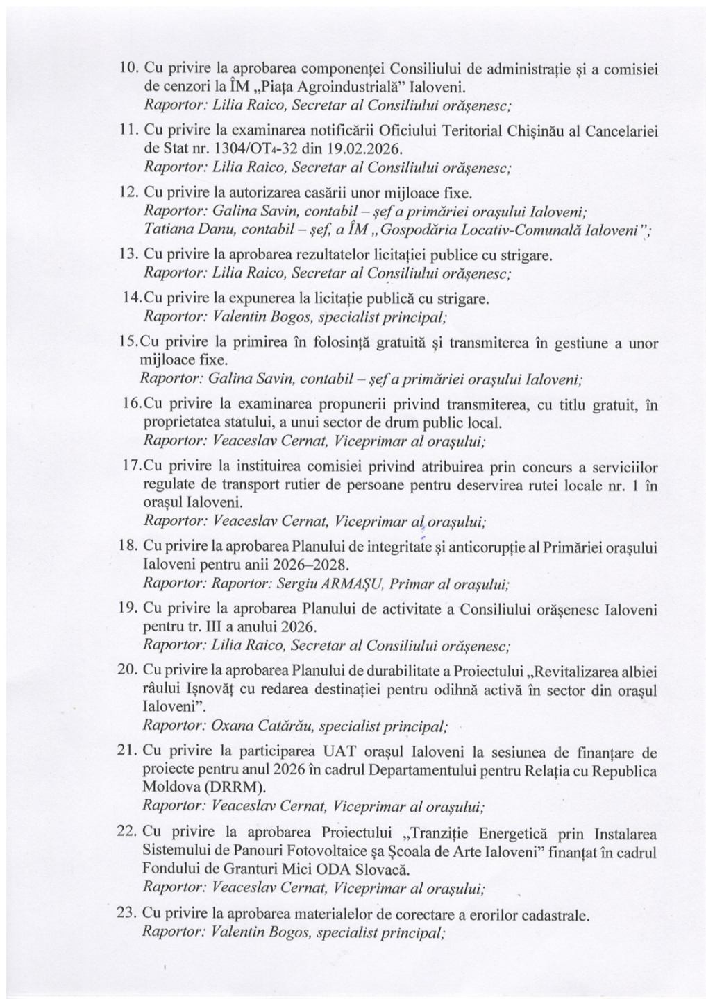 Ordinea de zi a ședinței se anexează.
