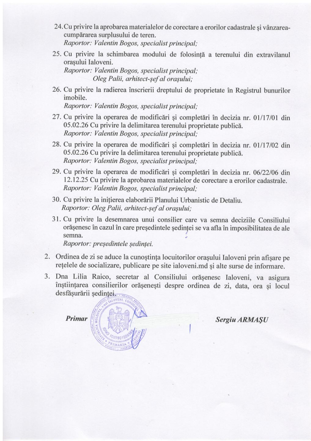 Toată informația aferentă ședinței poate fi consultată pe pagina web oficială: www.ialoveni.md