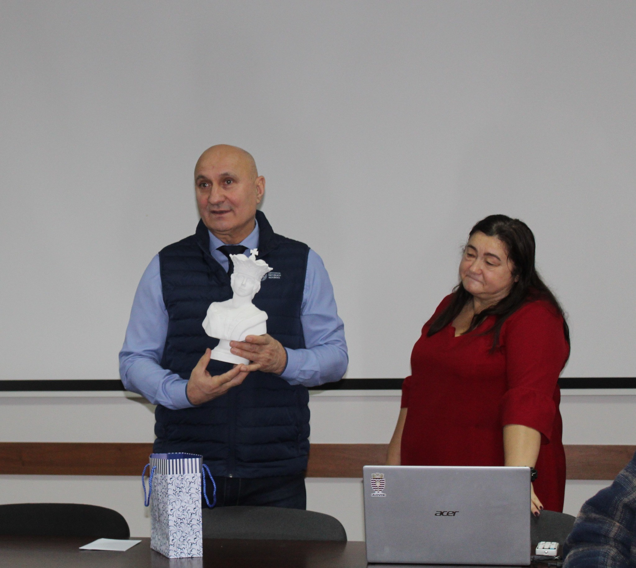 Dl Sergiu ARMAȘU, Primarul orașului Ialoveni, în numele tuturor celor prezenți, a mulțumit pentru prezentarea frumoasă a micuților și a dăruit grădiniței bustul Reginei Maria a României, numele căreia în poartă instituția de educație timpurie nr.5 din Ialoveni, el a dorit ca sărbătorile de iarnă să aducă tuturor bucurii, belșug, succese și sănătate.