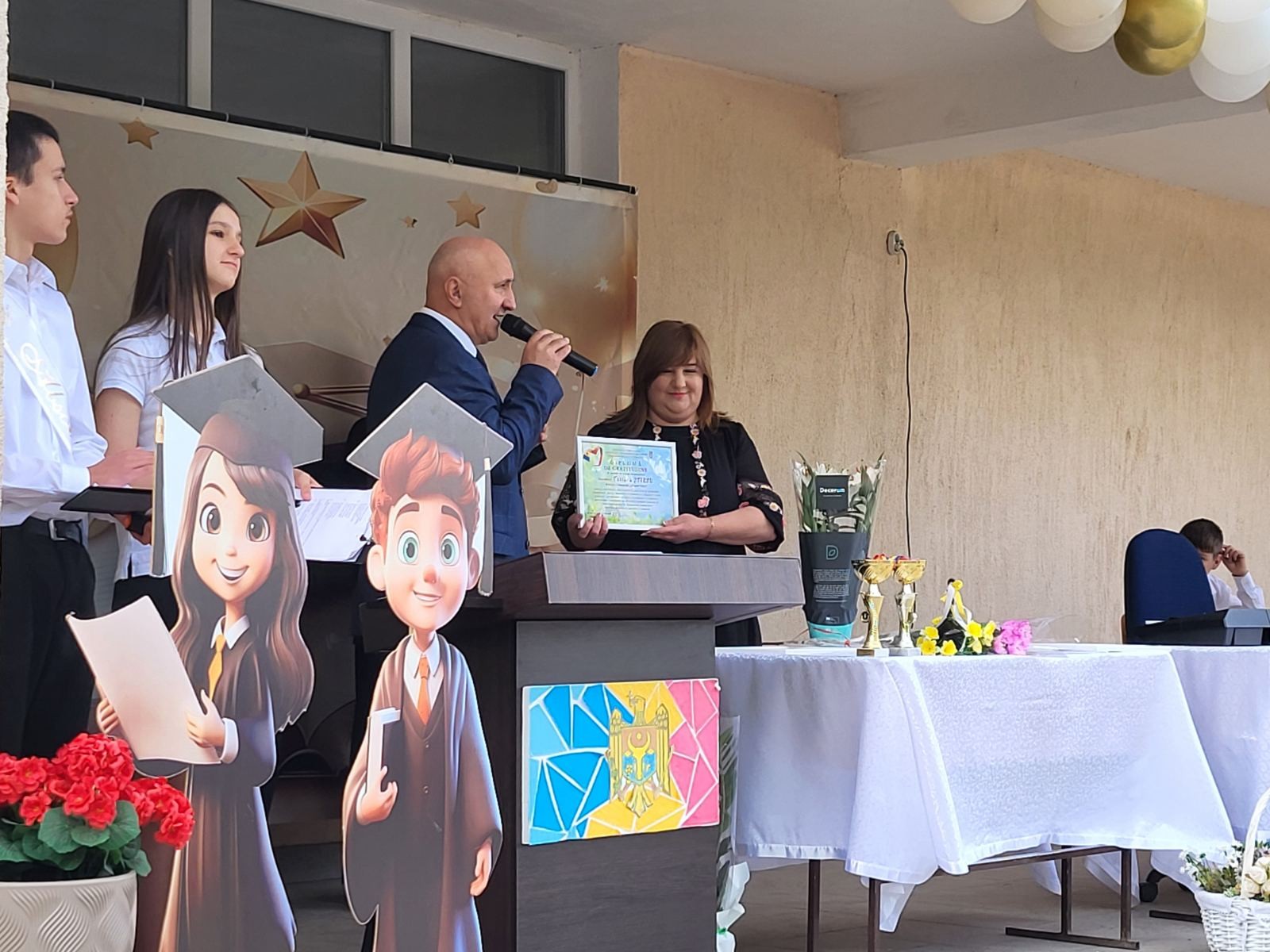 La festivități a participat și Primarul orașului Ialoveni, Sergiu ARMAȘU, care a adresat un mesaj de felicitare absolvenților, profesorilor și părinților, exprimând recunoștință pentru efortul și implicarea tuturor în procesul educațional.